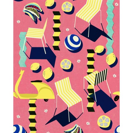 A captivating wallpaper infused with vibrant geometric patterns that are endlessly repeated, reminiscent of sparkling ocean waves. Here, relaxation is at its core, creating a cheerful ambiance that effortlessly elevates any space. Alongside these coastal-