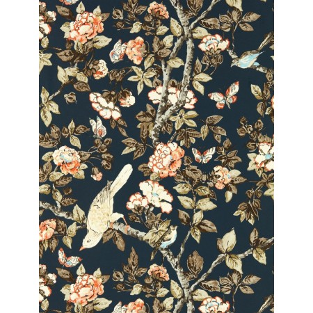 Inspired by a beautiful, painted silk, this wallpaper was designed in the Sanderson studio. Telling a story of English water gardens, Emperor ducks, characterful frogs and regal koi carp pair with irises and roses to recreate the spirit of the 1930s. Avai