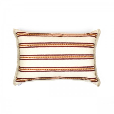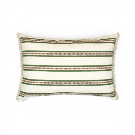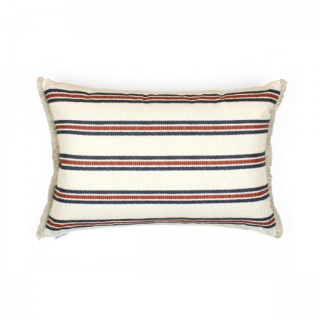 Cojín de exterior con patrones diseñados a mano por Álvaro Picardo, en este caso líneas entrelazadas que evocan el trabajo artesanal del mimbre.